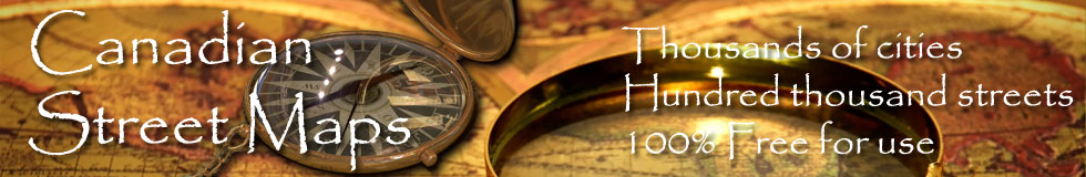 Maps with street lists for most popular places in Canada. More then hundred thousand streets in data base with GPS locations. Every street from our data base have it's own page, where You can add any comment (for example your business located in that street). Our street maps are free for use. More about terms of use, privacy and sources You can read on contact page. Start searching by choosing province or territory: